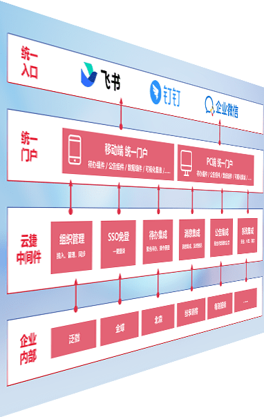对协作平台提供支持服务,,支持企业应用与协作平台对接,,,包含组织同步、、消息集成、、待办集成等。。。支持目前主流的协作平台:钉钉、、、企微和飞书。。